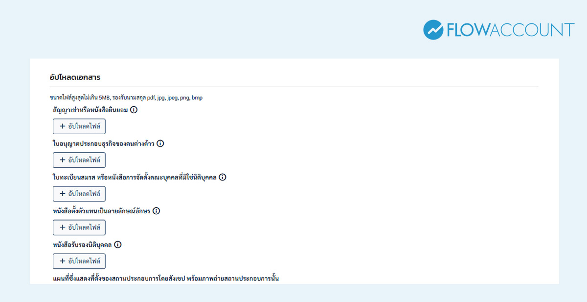 หากพร้อมแล้วที่จะจดทะเบียนภาษีมูลค่าเพิ่ม ในส่วนถัดไป FlowAccount จะพามาสอนขั้นตอนการจดทะเบียนภาษีมูลค่าเพิ่มด้วยตัวเอง แบบเข้าใจง่าย อ่านจบแล้วทำได้เลย ซึ่งก่อนอื่นจะต้องเตรียมเอกสารให้พร้อม ดังนี้
