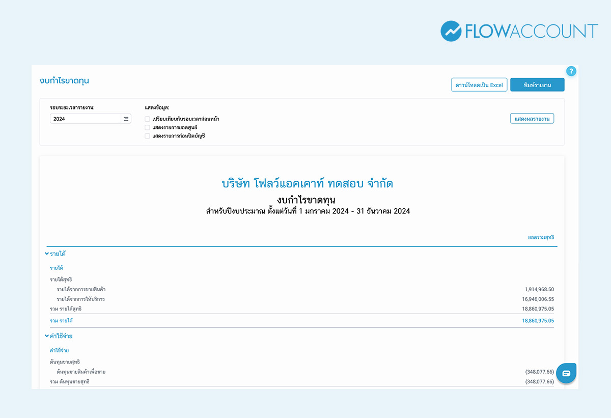 ตัวอย่างงบกำไรขาดทุน 6 เดือนแรกจาก FlowAccount