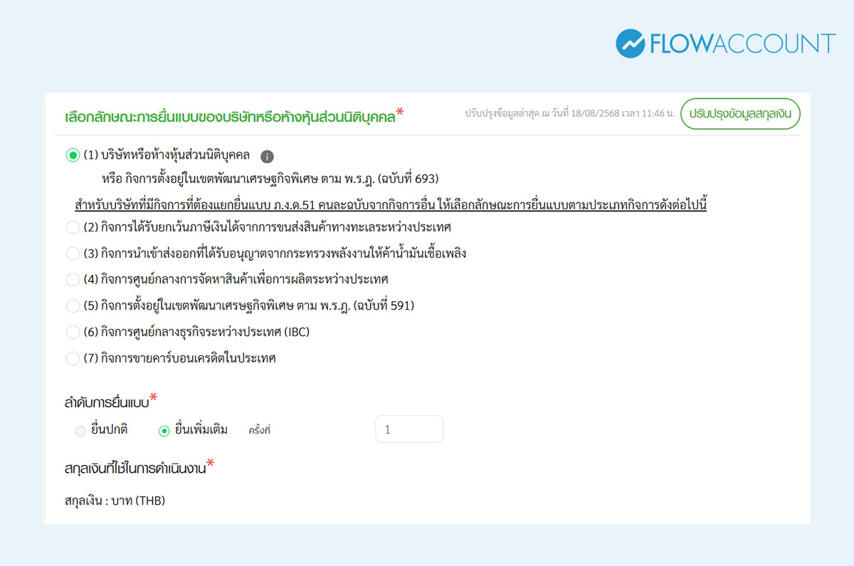 - เลือกลักษณะการยื่นแบบ ส่วนใหญ่แล้วบริษัท SMEs ทั่วไปเข้าเงื่อนไขข้อ 1