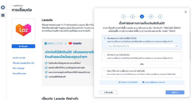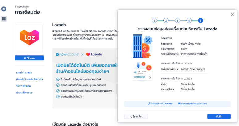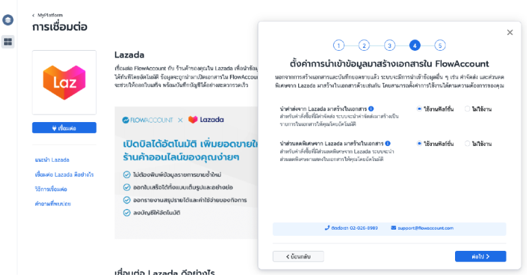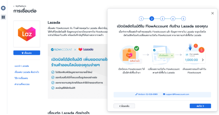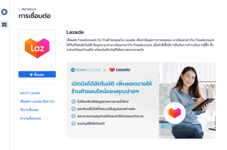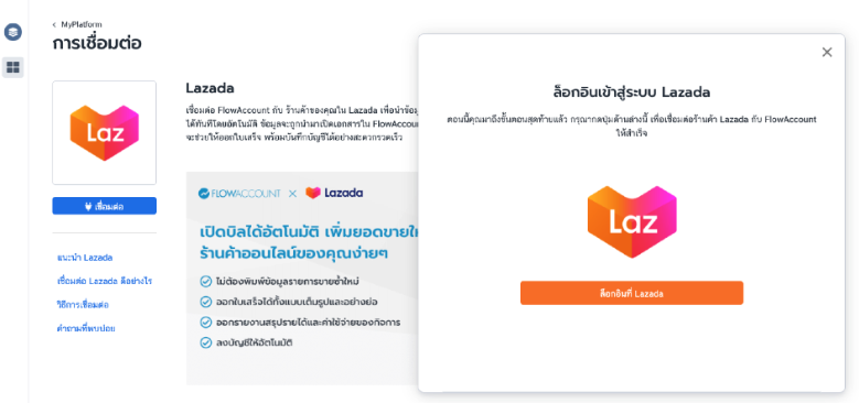 - เข้าเมนู MyPlatform ใน FlowAccount และเลือก Lazada จากนั้นกดปุ่ม "เชื่อมต่อ"