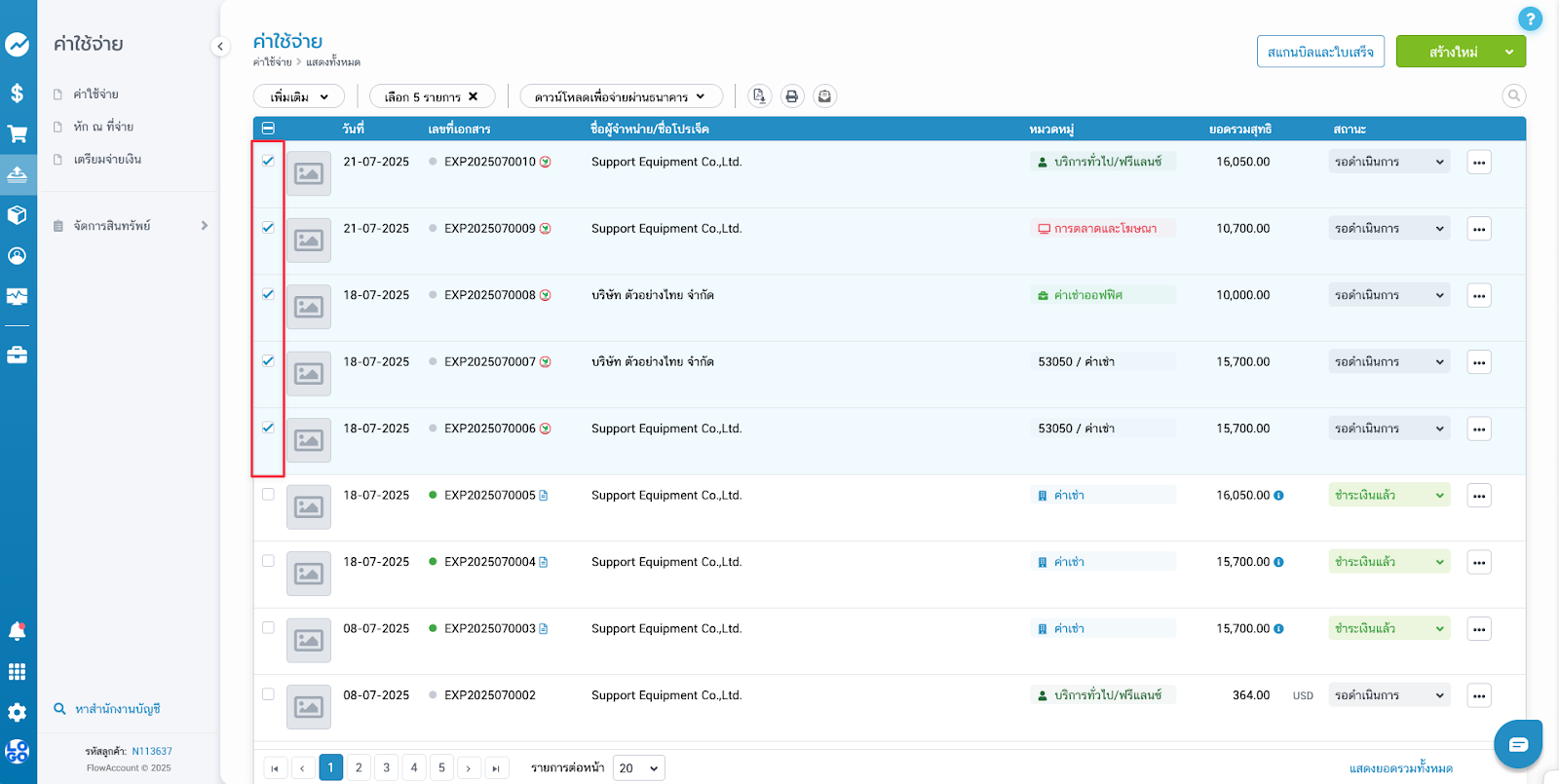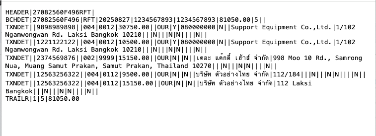 - สามารถเตรียมจ่ายในไฟล์เดียวกันได้สูงสุด 100 เอกสาร