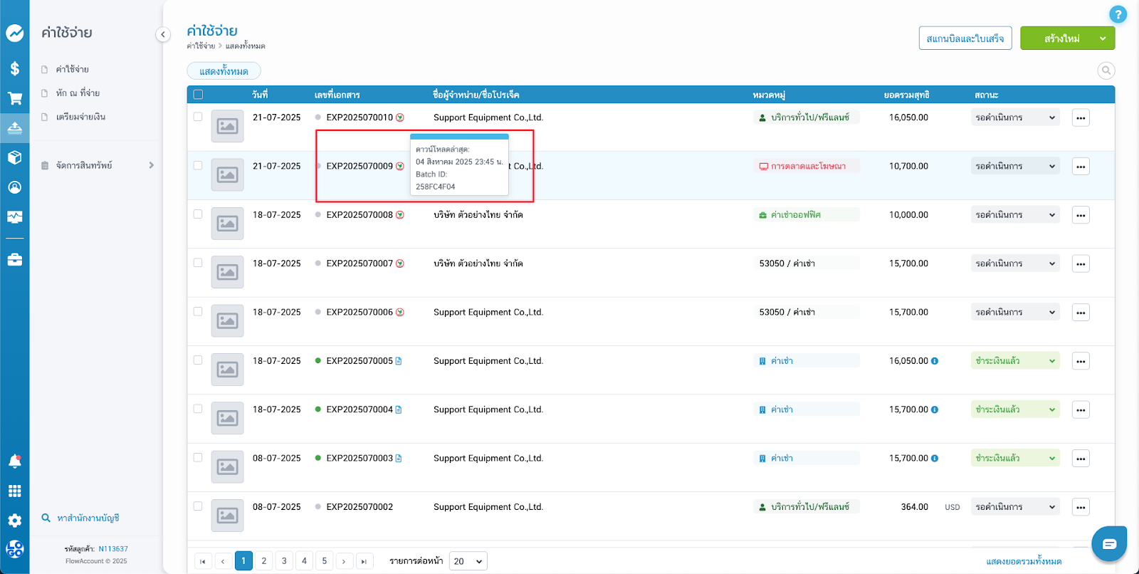 - สามารถลบเอกสารที่เลือกเข้ามาดาวน์โหลดออกได้ ซึ่งเอกสารที่ลบยังคงแสดงอยู่ในเมนูค่าใช้จ่าย หรือใบรับสินค้าเหมือนเดิม
