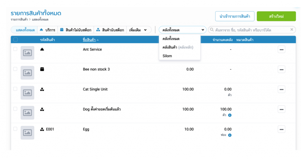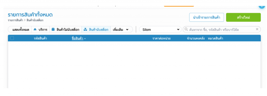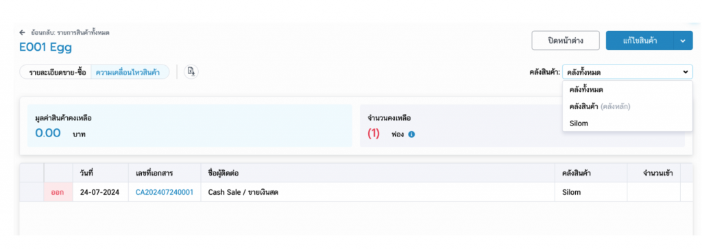 หาก Filter คลังสินค้า เป็น Silom จะไม่เจอสินค้านี้เลย เนื่องจาก สินค้าชิ้นนี้ยังไม่เคยทำรายการใดๆ ที่คลัง Silom