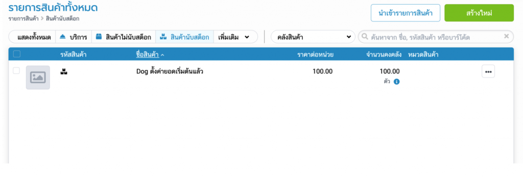 ไปที่เมนูสินค้า > สินค้า