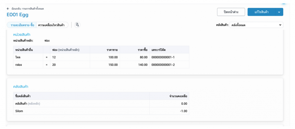 และระบบอนุญาติให้จำนวนสต็อกติดลบได้