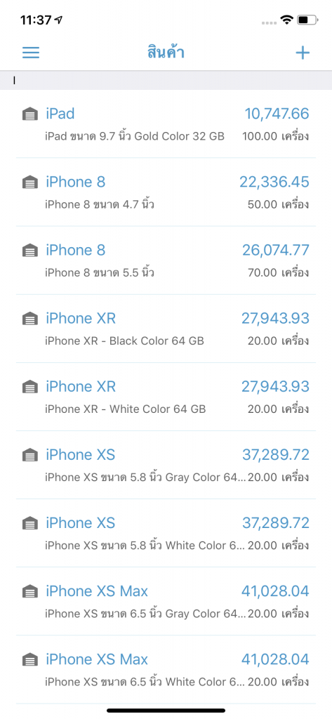 1. กดปุ่ม + เพื่อสร้างสินค้าใหม่