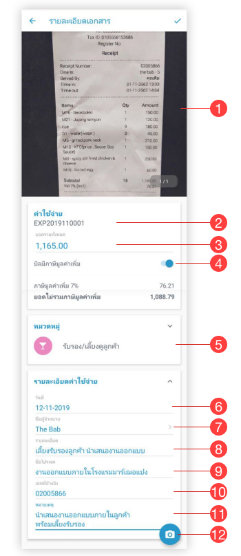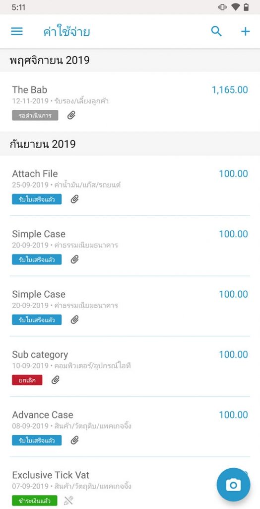 สร้างเอกสารอย่างรวดเร็ว กดที่ปุ่ม กล้องจากหน้า รายการเอกสารค่าใช้จ่าย เหมาะสำหรับถ่ายบิลเอกสารค่าใช้จ่ายเก็บไว้ เพื่อกรอกรายละเอียดทีหลัง