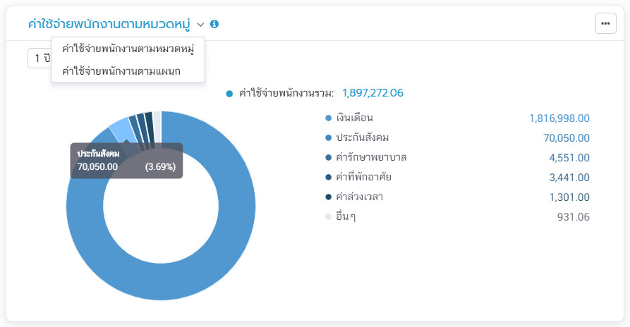ให้คุณดูว่าค่าใช้จ่ายที่เกี่ยวข้องกับพนักงานเป็นค่าใช้จ่ายใดบ้าง เป็นสัดส่วนเท่าใด