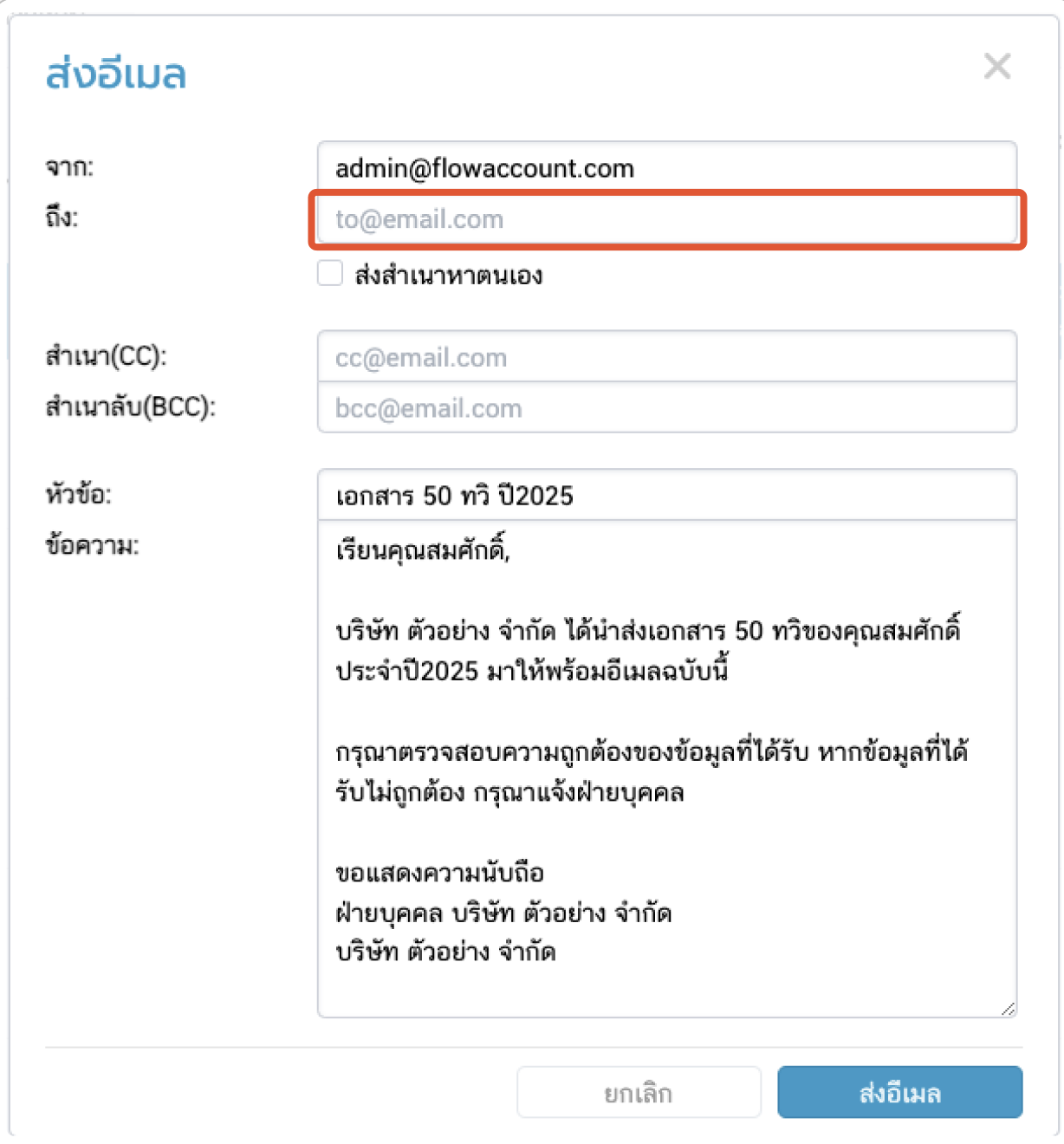 - หากไม่มีข้อมูลอีเมลในระบบ ผู้ใช้สามารถกรอกอีเมลใหม่ก่อนส่งได้ หรืออัปเดตข้อมูลในหน้า "ข้อมูลพนักงาน"