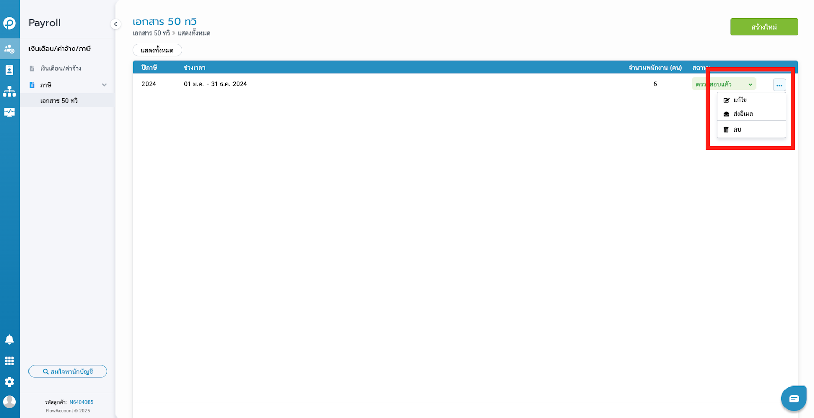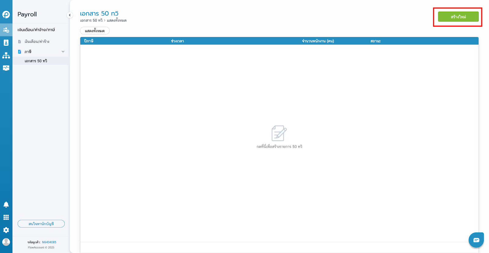 - คลิกที่ ‘เอกสาร 50 ทวิ’ และเลือก ‘สร้างใหม่’