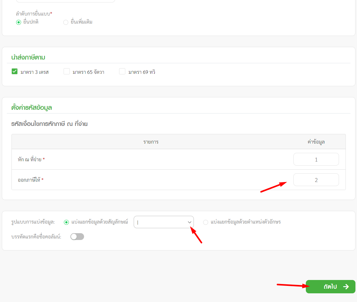 - เลือกรูปแบบการแบ่งข้อมูล สำหรับไฟล์ข้อมูลจาก FlowAccount ให้เลือก |