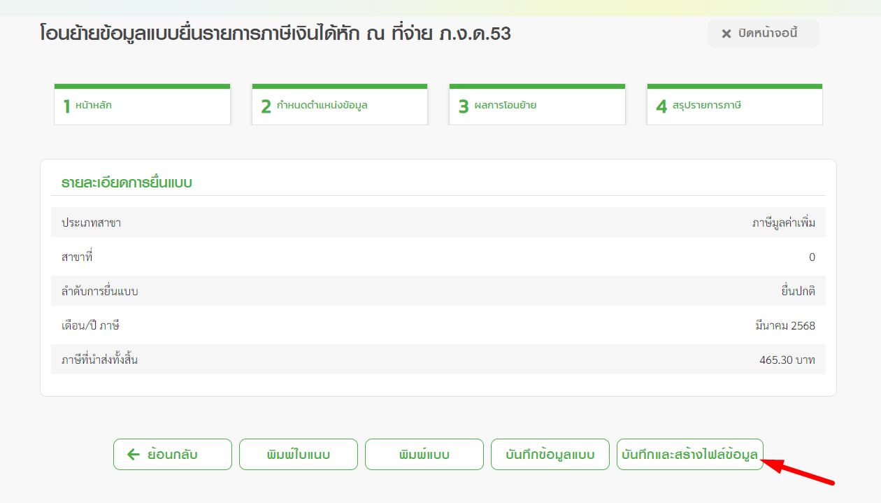 4.6 ทำการบันทึกและสร้างไฟล์ข้อมูล เพื่อยื่นภาษีหัก ณ ที่จ่ายออนไลน์