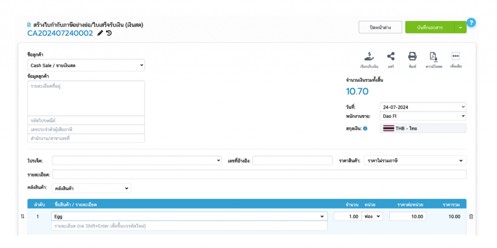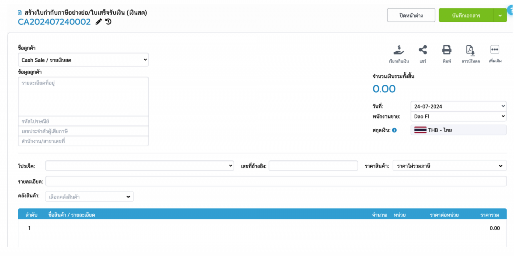 ทุกเอกสารจำเป็นต้องมีคลังสินค้า เพื่อให้การตัดสต็อกสินค้าถูกต้อง