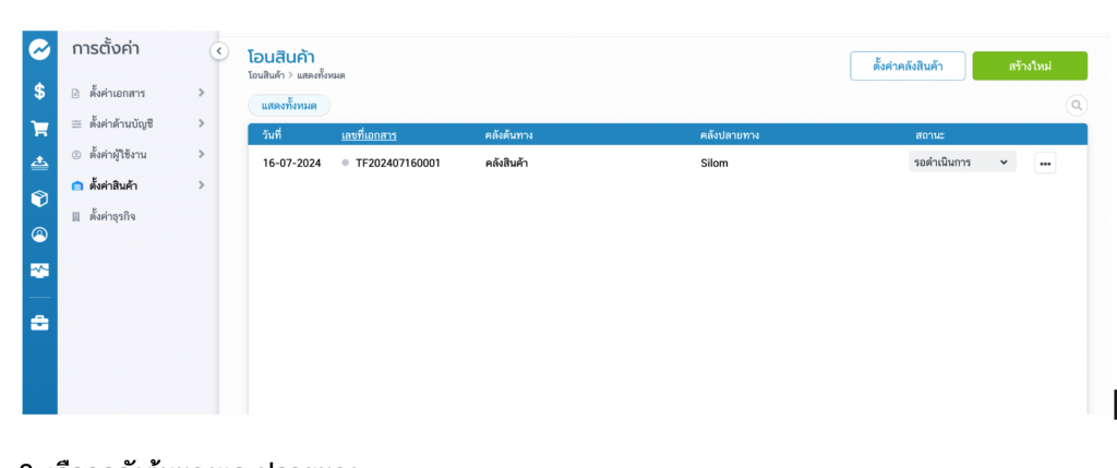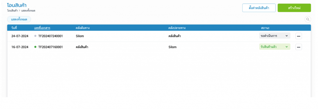 หากธุรกิจของคุณ มีการใช้งานหลายคลังสินค้า และ ต้องการโอนสินค้าข้ามคลัง สามารถทำได้โดย สร้างใบโอนสินค้า