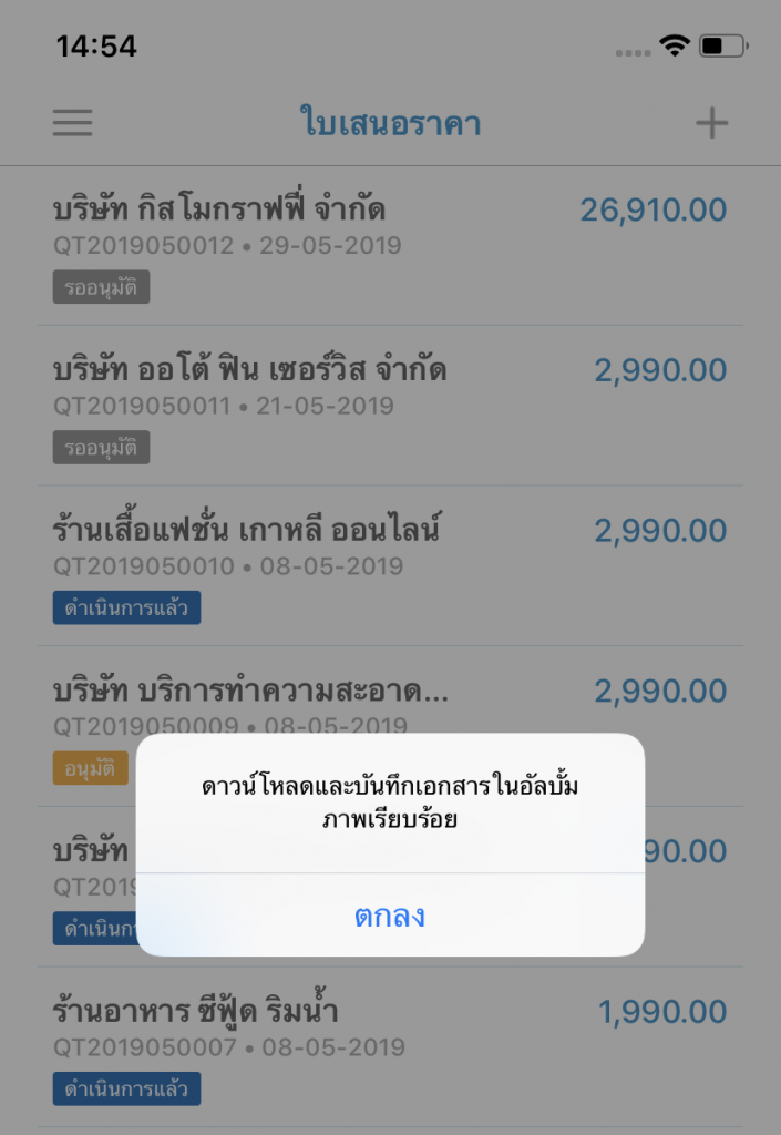 เมื่อทำการกดเมนู บันทึกเอกสารเป็นภาพ เรียบร้อยแล้ว ระบบจะแสดงข้อความแจ้งเตือน กดตกลง