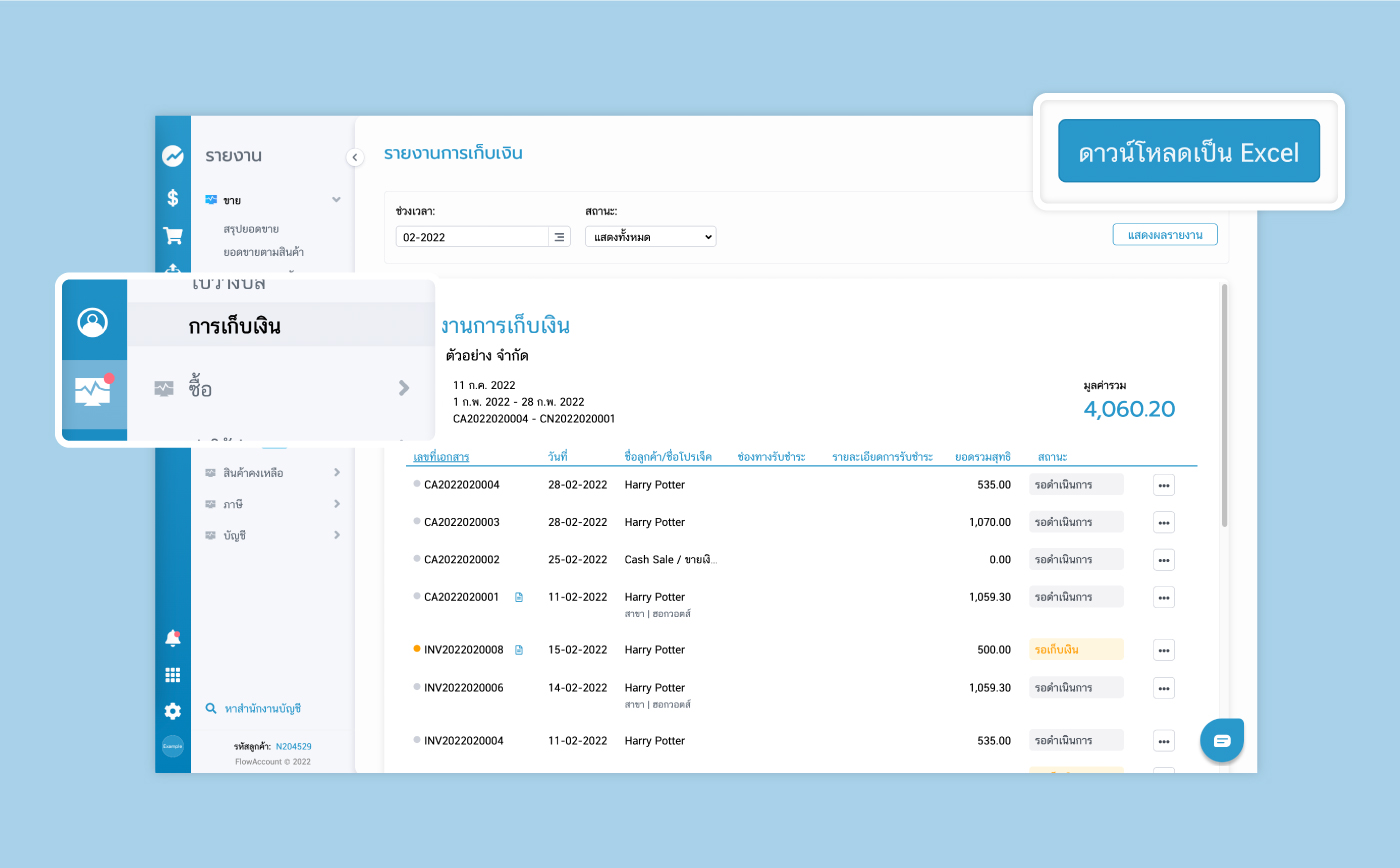 - สามารถตรวจสอบยอดเงินประกันผลงานที่ถูกหักไว้โดยการดาวน์โหลดรายงานการเก็บ
